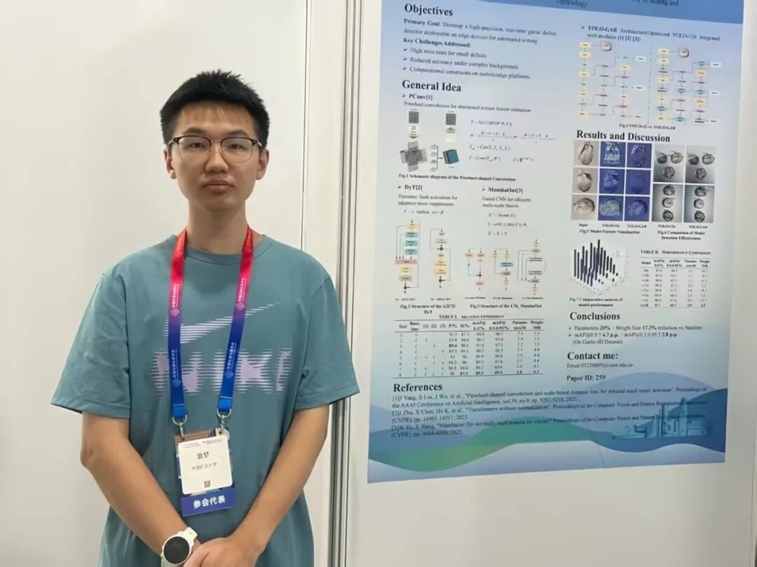 袁梦为响应农业现代化号召,组建团队申报省级大创项目,深入徐州农业产区调研人工分拣痛点,暑期驻扎一线优化图像采集参数,在实验室负责检测架构设计,与队友分工协作、向学长学姐请教经验;针对图像检测难题,他专心投入对比多种模型设计适配网络,实现准确率提升6.5%、参数量降低20%,推动项目拿下专利、产出EI检索论文。在学习中,他认为数理基础与跨学科应用能力的训练是未来深入科研的根基与保障,带领团队深耕数学建模,斩获国际特等提名奖、全国二等奖等佳绩,赛后分享经验带动同学进步。