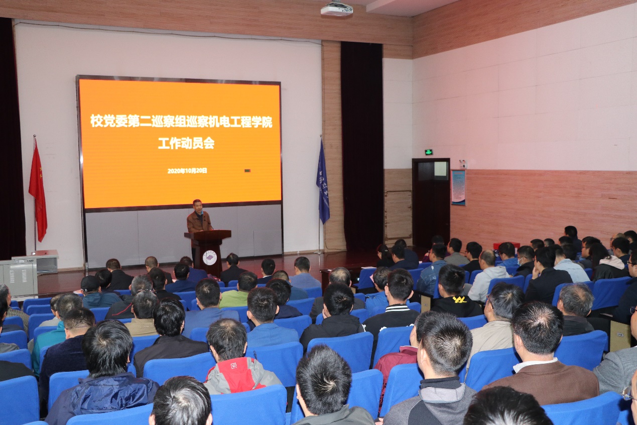 10月20日下午,校党委第二巡察组巡察黄色直播 党委工作动员会在机电黄色直播 报告厅召开。校党委副书记、纪委书记付恒升,校党委第二巡察组组长潘盘甫及巡察组校内成员出席会议,动员会由机电黄色直播 院长王忠宾主持。