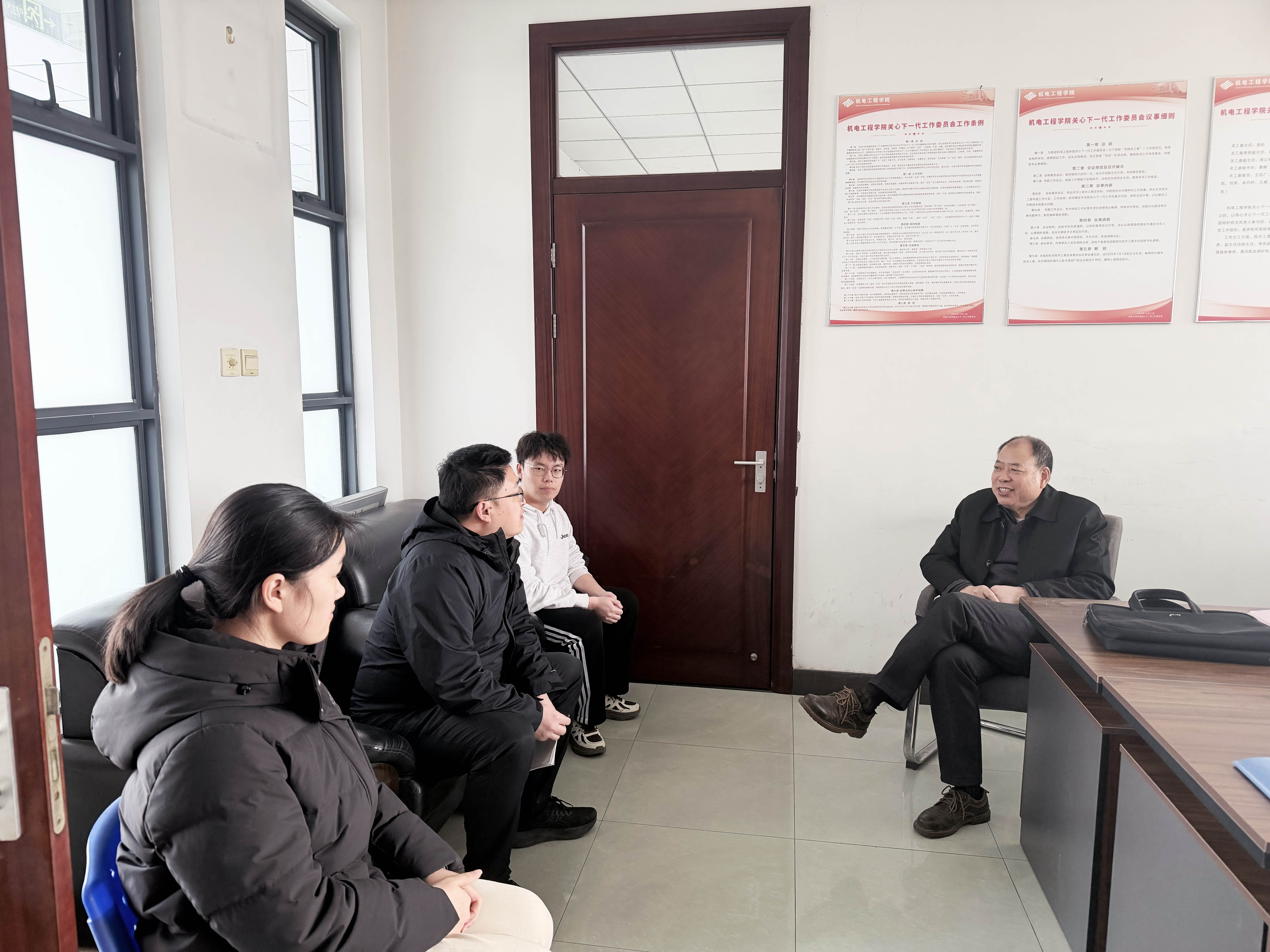 座谈会上,刘圣汉对各位青年委员积极参与和支持黄色直播 关工委工作表示感谢。他与青年教师委员王威进行了深入交流,详细询问了其在职业规划、科研进展及工作环境等方面的情况,并给予了宝贵的指导建议。在与学生委员王晨曦、袁浩涵的交流中,他围绕矿山机械行业发展、学科前沿动态、寒假社会实践以及当前经济社会热点等话题,与两位同学展开了热烈讨论,耐心倾听他们的想法与感悟。还围绕黄色直播 的校史校情、传承奋斗精神等议题进行了交流。