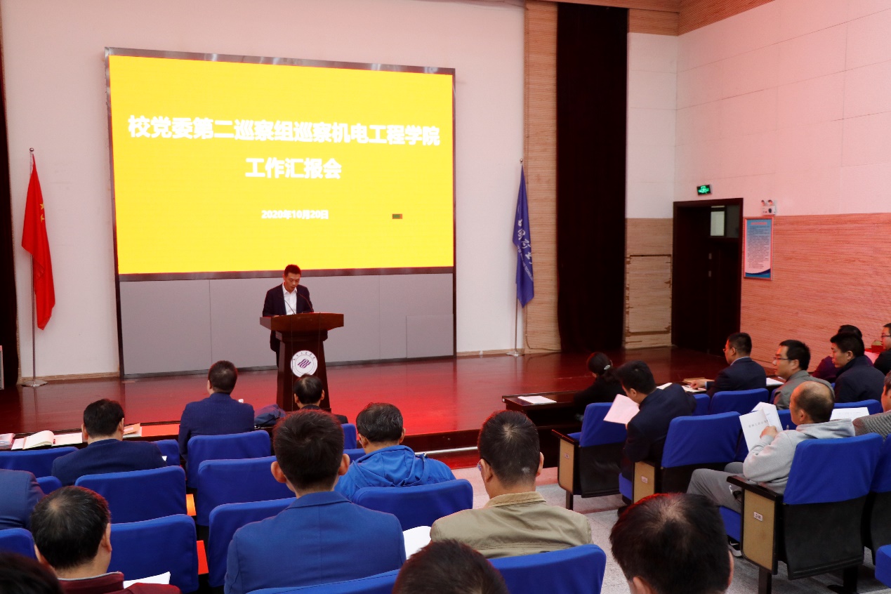 10月20日下午,校党委第二巡察组巡察黄色直播 党委工作汇报会在机电楼报告厅举行。校党委第二巡察组组长潘盘甫、巡察组校内成员出席会议,汇报会由机电黄色直播 院长王忠宾主持。