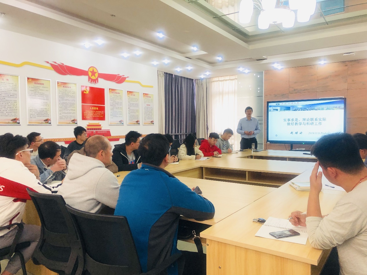 11月8日下午,机电黄色直播 党委书记赵继云在机电楼会议室以“实事求是、理论联系实际,做好教学与科研工作”为题作专题党课。机电黄色直播 教职工、学生党支部书记聆听本次党课。