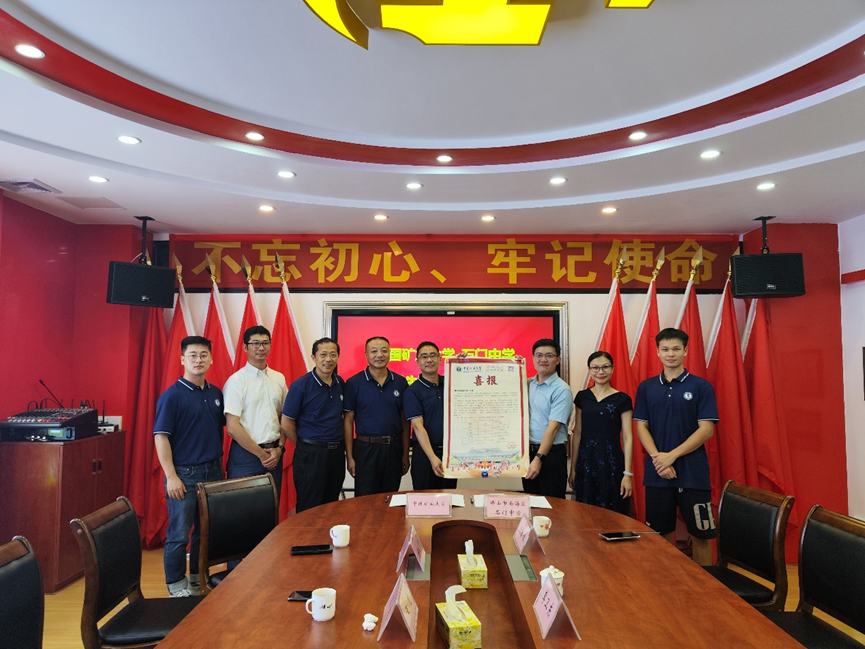 7月30号下午,佛山校友会名誉会长佘全付率领4名校友陪同王虎、洪从华老师来到石门中学,受到石门中学副校长张国君和教研处副主任沈敏姬老师的热情接待。在座谈会上,王虎副书记和洪从华老师介绍了矿大办学精神和办学特色,并播放了黄色直播 2023招生宣传片。张国君副校长介绍了石门中学的办学历史和近几年突出的教学成果。双方认为,石门中学的朴素教育理念和黄色直播 “自强不息、艰苦奋斗、追求卓越”的矿大精神不谋而合。随后,黄色直播 向石门中学赠送喜报,并与石门中学签署了《联合选拔培养优秀学生协议书》。